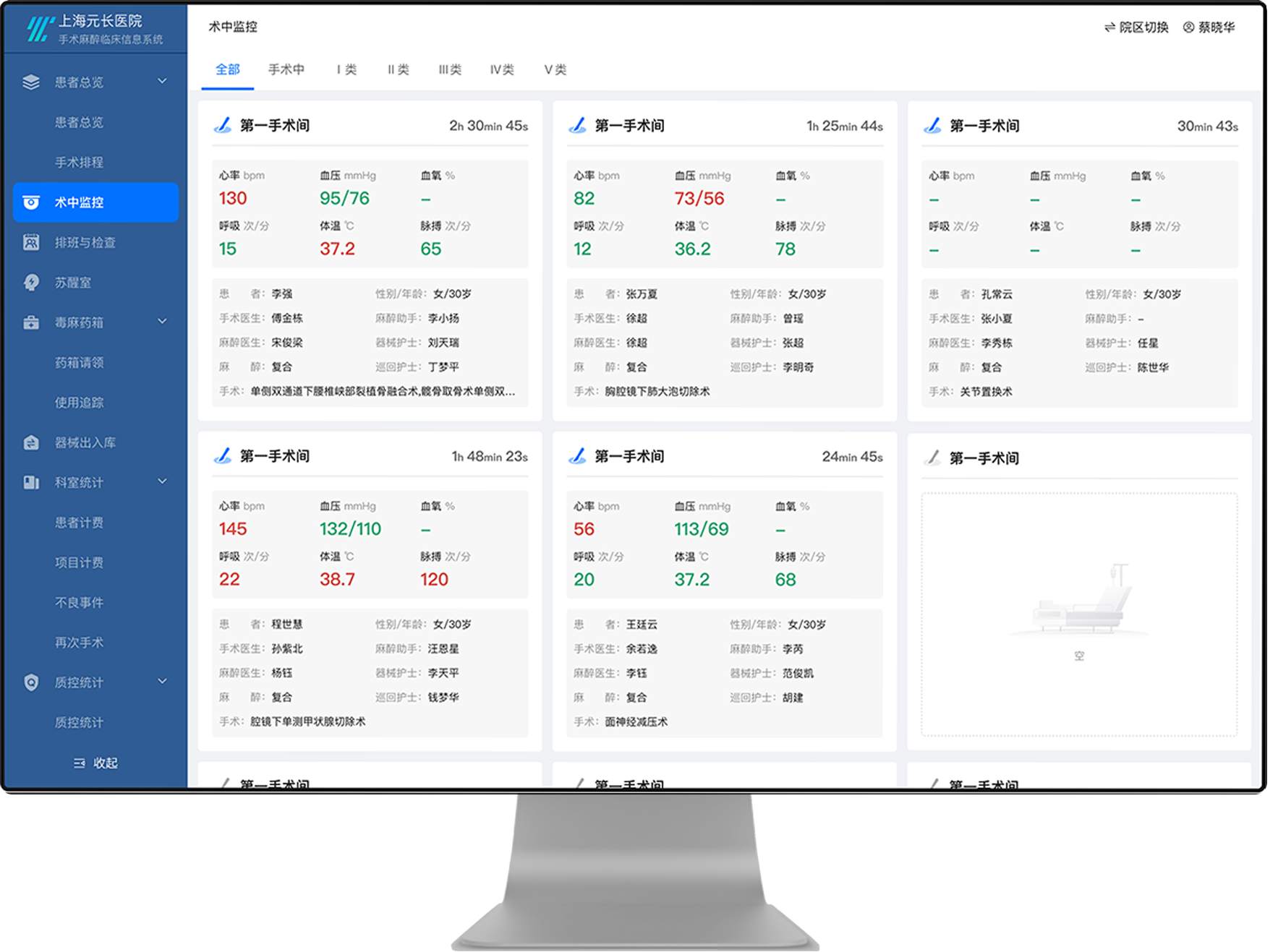 麻醉医生工作量、设备使用率等关键指标缺乏可视化看板,影响资源调配决策。